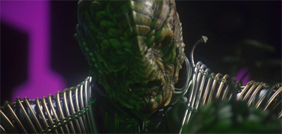 Even allowing for the fact that Dolim is a fifties b-movie baddie, Scott MacDonald does tremendous work as Dolim. It is quite clear that the actor is relishing every moment that he is on the show, with his wonderfully deep voice and slightly sinister lisp forced by the prosthetic teeth. Dolim is not a character who will garner the same sort of attention and praise that accrues to characters like those played by Jeffrey Combs. At the same time, MacDonald does a tremendous job realising what is basically and unapologetically a two-dimensional villain.