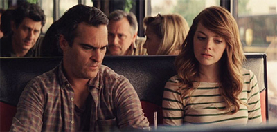 Emma Stone is just as reliable as Jill Pollard, cast in the role of the movie’s voice of reason. Pollard could easily become a thankless role; a very simply moral lesson in a script that already leans towards the didactic. However, it is to the credit of Stone that Pollard seems like a compelling and intriguing character in her own right. The script positions Pollard as a less dynamic lead than Lucas, but Stone holds her own against Phoenix; she captures Pollard’s arc perfectly, from the stereotypical naive muse to the more mature young woman.
