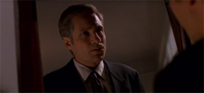 “When in disgrace with fortune and men’s eyes,” the Cigarette-Smoking Man quotes, making a theatrical turn from the corner of the hospital room. He adds, “Ah, but your mummy will still love you.” Shortly after that point, he punctures Mulder’s self-importance by assuring the hero, “You’re not Christ. You’re not Prince Hamlet. You’re not even Ralph Nader. You can walk out of this hospital and the world will forget you.” There is a certain relish to the dialogue that is missing from too many of the character’s appearances.