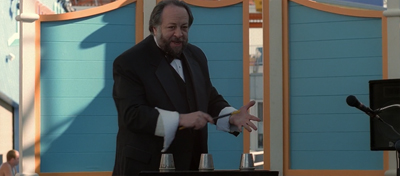 The teaser to The Amazing Maleeni is built around a moment of such trickery. Goaded on by LaBonge, the eponymous magician decides to pull off the ultimate trick; he plans to rotate his head a full three-sixty degrees. It is a fairly daunting challenge, and The Amazing Maleeni accomplishes it through some very obvious computer generated imagery. The sequence is painfully obvious, the type of special effect that looks like it belongs on an old episode of Doctor Who.