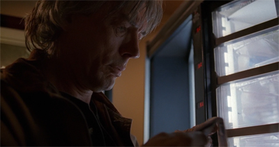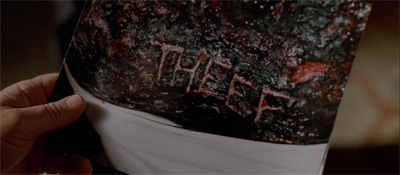 The episode represents another conscious attempt to get “back to basics.” Continuing the vein of Hungry or Millennium or Orison or Signs and Wonders, the script for Theef hopes to prove that the show can still produce a genuinely scary hour of television in its seventh season. It certainly succeeds; Theef is a delightfully unsettling story, one that borders on the downright nasty. From the closing shot of the teaser – a body suspended from a chandelier with the word “Theef” scrawled on a wall in his own blood – Theef goes for the jugular.