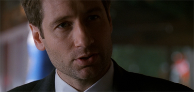 It’s not a bad hook; the problem is that the script has Mulder make the observation in the most awkward manner possible. “It’s a freak show, Mulder,” Scully complains of her surveillance duty. “It’s a nonstop parade of every single lowlife imaginable.” Mulder responds, “Well, the view may not be too different here. It’s dressed up a little nicer but underneath the surface, it’s the same seamy underbelly.” It is something towards which Chimera has very consciously been building, but the script makes it sound profound rather than obvious.