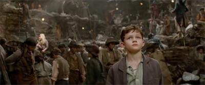 Even in hindsight, it is impossible to identify the strangest idea or image in Pan. Is it the idea of crooked nuns selling orphans to bungy-jumping space pirates for what look like gold doubloons? Is it the fact that the child slaves working in Blackbeard’s mines creepily drone Nirvana and The Ramones as a prelude to spectacle? Is it the use of magic pixie dust (“pixum”) as a drug prepared in a manner similar to heroin or crack cocaine? Is it the detail that the natives of Neverland spontaneous burst into puffs of coloured smoke when they are hit with anything?