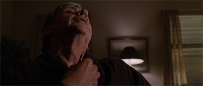 If the Alien Bounty Hunter represents a graceful and tidy death for The X-Files, the Cigarette-Smoking Man stands (or sits) in opposition to that concept. He represents the urge to keep The X-Files alive at any possible cost, to keep the show ticking past the point of viability and sustainability. En Ami made it clear that the Cigarette-Smoking Man was an agent of the status quo, so dedicated to the preservation of the way things are that he would not allow a cure for cancer to escape into the public domain. Even here, he refuses to give up smoking as he sits dying.