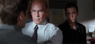 Carter spoke about his frustration with that decision to the press – he alluded to the idea that Fox no longer understood his work or valued his output. Short plays like a parody of the network-executive-as-accountant. “By FBI standards these numbers are out of control,” Short observes; he could be talking about the ballooning budget of The X-Files since it moved to Los Angeles or the shockingly low ratings of the first three episodes of Harsh Realm. “There has to be a point when we say no.”