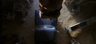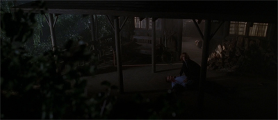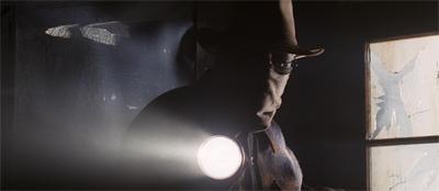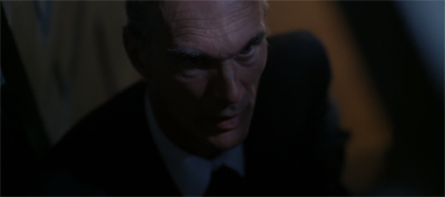 This darkness also applies to exterior and location work. Whereas sixth season episodes like The Beginning and Drive tended to depict the desert in the harsh light of day, Without features an extended sequence of Scully wandering through the desert at night. The teaser to Patience takes it one step further, featuring an undertaker clad in black and driving a black Cadillac hearse who arrives home late at night. Even the choice of a bat as the antagonist draws attention to this stylistic choice.