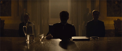Sitting at the head of a long table, the baddie does not even reach for the microphone himself. Shot in shadows, the first half of the film seems to suggest that the baddie is nothing more than a puppet for some more primal force or entity. When Bond decides to pursue his investigation to the secretive cartel at the heart of the film, he is advised that he is “crossing over into a world without mercy.” A new intelligence agency is described as “the world’s digital ghost.” It is a very unique tone for a James Bond film, despite the familiar scale and spectacle around it.