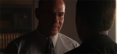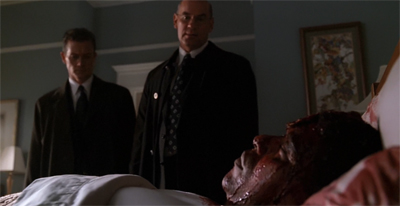 Mulder and Scully would accept this, because this is simply the narrative logic by which The X-Files must work. It is a horror show, after all. However, Doggett is simply not comfortable with this non-conclusion. He seems to pick at the non-ending, drawing attention to the logical gaps in the procedural model. “Case isn’t over yet, sir,” Doggett insists. “We have no murder weapon… no forensic evidence. Unless we accept Tipet’s own beliefs, which you yourself characterize as preposterous, we have no way of explaining how he killed any of these people.”
