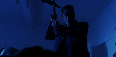 All of this builds to climax where Doggett imagines himself sneaking into Scully’s apartment so as to cleave her skull open with a giant ceremonial axe. The entire sequence is beautifully shot by director Tony Wharmby and features a stunning performance from Robert Patrick. It turns out that Doggett’s deepest darkest nightmare is that he will kill Scully. Even before he handles the axe, Doggett imagines himself as a murderer: in an earlier vision, the bloody footprints led back to him; when he prepares to open the door to Scully’s apartment, there is blood on his hands.