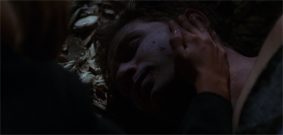 It is an effective example of the show brushing up against the limitations of imposed by the contract negotiations with Duchovny. It is also an example of the make-up department’s great work. They won an Emmy for DeadAlive.