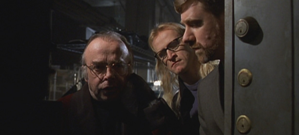 As such, it feels perfectly consistent to suggest that Langly is the most impulsive member of the Lone Gunmen. Byers’ reckless behaviour in both Unusual Suspects and Three of a Kind was firmly established as out of character, so it makes sense for Langly to occupy the role of “the passionate one.” This is a choice that plays quite well to Dean Haglund’s strengths as a performer, much like casting Byers as the level-headed idealist plays to those of Bruce Harwood.