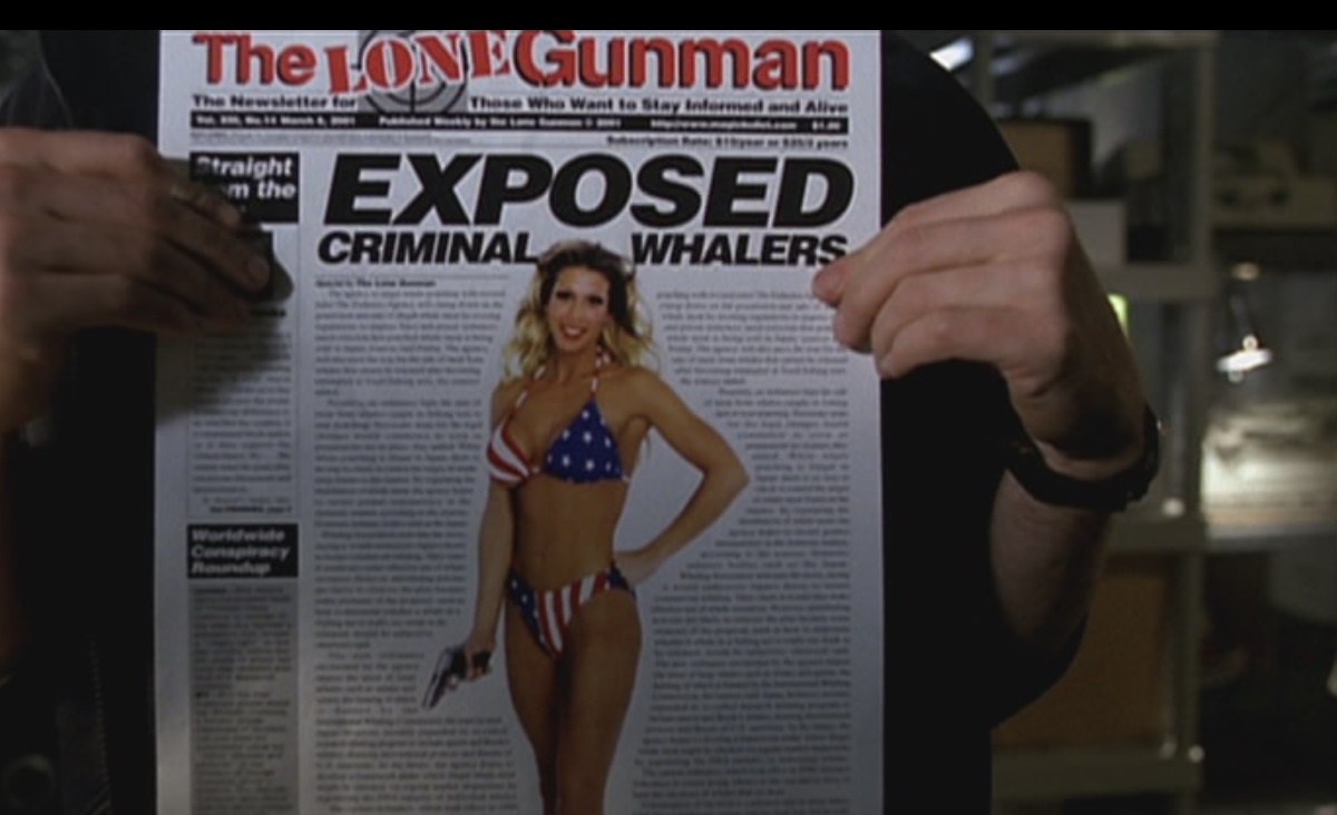 This contributes to the sense that The Lone Gunmen was a show out of time. In the context of twenty-first century television, the introductions to Bond, Jimmy Bond or Maximum Byers might play best as webisodes companions (or web-exclusive content) for The X-Files. They would certainly help to fill gaps in the production schedule and build anticipation between seasons. Sure Mulder is missing, but the Lone Gunmen think they’ve found Elvis! Sure Scully is having her big “no!” moment over Mulder’s corpse, but here’s the Lone Gunmen thwarting whalers!