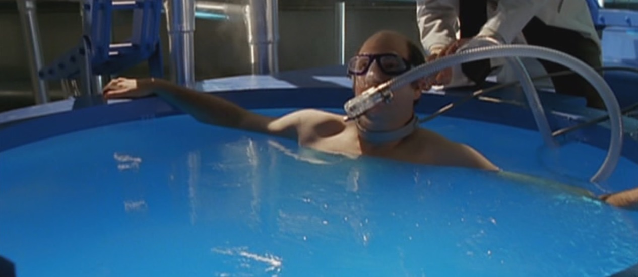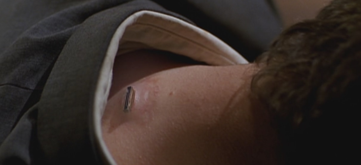 At one point, the Lone Gunmen discover what looks like a USB port on the back of Adam’s neck. In an obvious shout-out to The Matrix, which already proved a major influence on both Harsh Realm and the teaser to Bond, Jimmy Bond. More than that, it plays into the same body horror themes that reverberate through the eighth season of The X-Files. The presence of a USB port on the back of Adam’s neck suggests that the human body is nothing but a machine made of meat that can easily be wired into more mechanical systems.