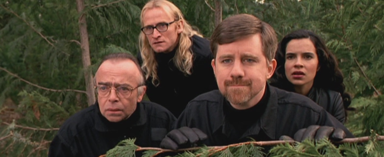 The best episodes of the show embrace comic sensibilities while finding a powerful or insightful core. Madam, I’m Adam is one of the more surreal episodes from the show’s run, but it is also the most affecting. The set-up for Tango de los Pistoleros is among the most ridiculous things that the show ever did, but the episode is essentially a story about desperate isolation and longing. The strongest episodes of the first season of The Lone Gunmen seem to suggest that the show would be smart to pitch itself as “weird drama” rather than “yuck-yuck comedy.”
