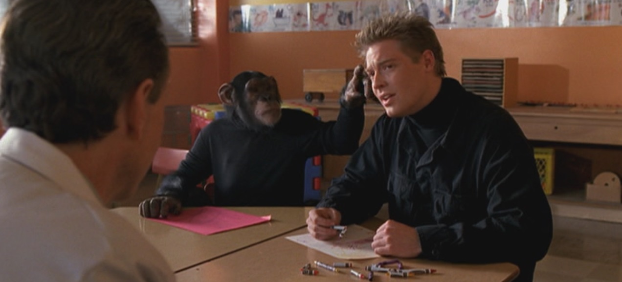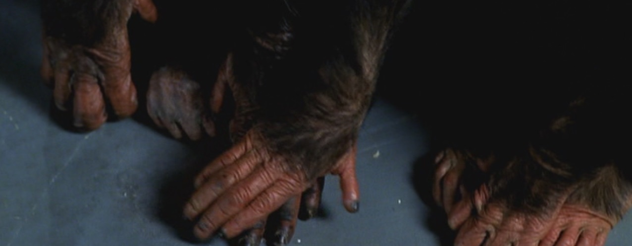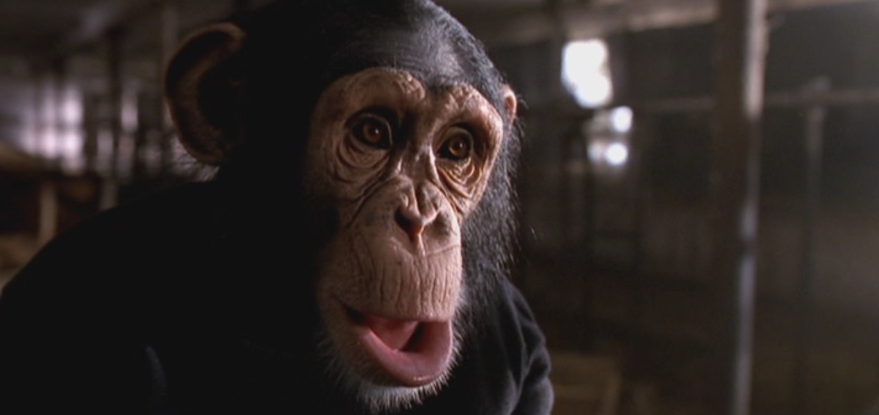 Running parallel to this expansion of the animal rights movement was a fascination with chimpanzees. The Lone Gunmen often feels like a nostalgic paean to a more romantic time, and the sixties and seventies fixations on the intelligence of chimpanzees feels like an appropriate basis for an episode. In its own way, Planet of the Frohikes is surprisingly timely. Nim Chimpsky – the chimpanzee who famously learned to communicate through sign language during the seventies – passed away in March 2000.
