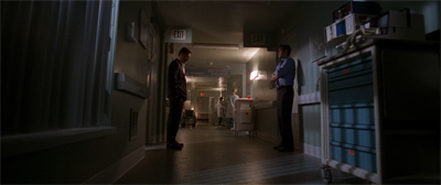 With the focus on Doggett and Reyes, Mulder is relegated to the role of mentor figure – a role he plays through the rest of the season. Indeed, Scully appeals to him to guide Doggett through his pain. “Are you able to help him at all?” she asks. Mulder seems skeptical, “You can’t help a man who can’t help himself.” Scully urges him, as much as those fans still reluctant to embrace Doggett, “He’s worth the effort, Mulder.” It is almost as if Mulder is practicing for his role as father, becoming a father figure within the narrative.