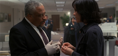 While this is quite frustrating, in the way that so much of the show’s attempts to draw out the mythology could be frustrating, it does connect with the deeper emotional arcs of the season. It seems quite likely that Mulder knows that he is the father; he is just not processing it. Indeed, much of Empedocles seems to play around Scully trying to gently get Mulder to accept that he will soon become a father. Of course, being Scully, she doesn’t confront Mulder directly about it, instead respecting his need to come to terms with it himself.