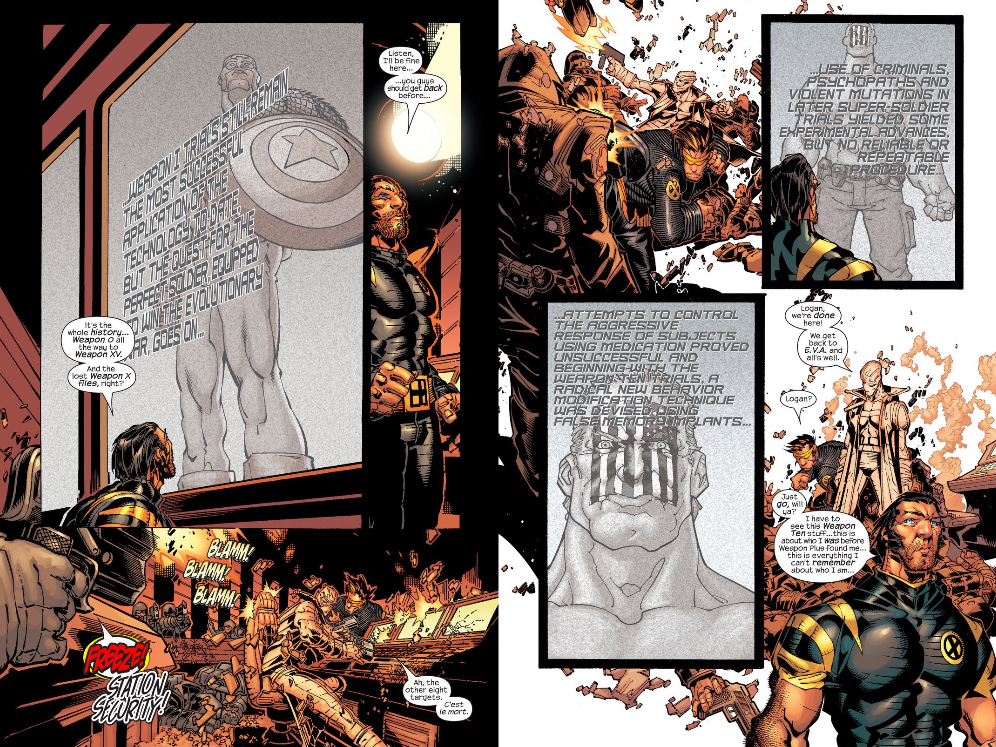 AKA 99 Friends positions Will Simpson as a surrogate for Captain America. This makes sense, given that Will Simpson was created by Frank Miller as the character Nuke ; a psychopath with the American flag literally tattooed across his face. The parallels to Captain America are obvious; Miller himself included Captain America in that Daredevil arc. Other comic book writers have built on this idea. Grant Morrison retroactively incorporated Will Simpson into the supersoldier program, while Jason Aaron made him the Captain America of Vietnam.