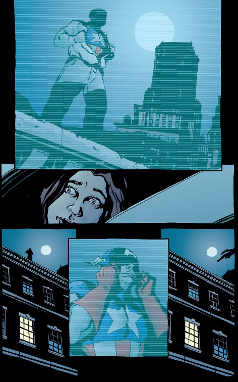 There are problems. The most obvious problem is one of intertextuality. Jessica Jones is a mostly faithful adaptation of Brian Michael Bendis and Michael Gaydos’ comic book Alias. While that comic book featured swearing and sex, it was still part of the larger Marvel continuity. While AKA Ladies’ Night is surprisingly faithful to the first issue of the comic, it does not replicate the cliffhanger. At the end of her first issue, Jessica Jones trails a woman to what appears to be an illicit rendezvous, only to discover her companion is… Steve Rogers, Captain America!