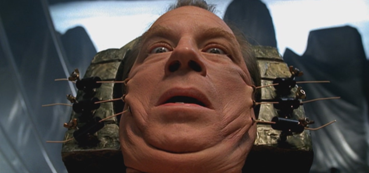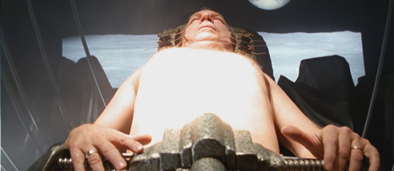 However, the scene is also structured as a fairly blatant “homage” to the alien torture sequences from Within and Without. The set is designed as low-rent imitation of the alien ship that housed Mulder, while Fletcher finds himself sitting in the exact same chair – bound and naked. He is even threatened with similar alien procedures. “Oh no, not the nose thing, I hate the nose thing!” It is a sequence that plays well in the context of The Lone Gunmen, but which is elevated to a whole other level by its connection to The X-Files.
