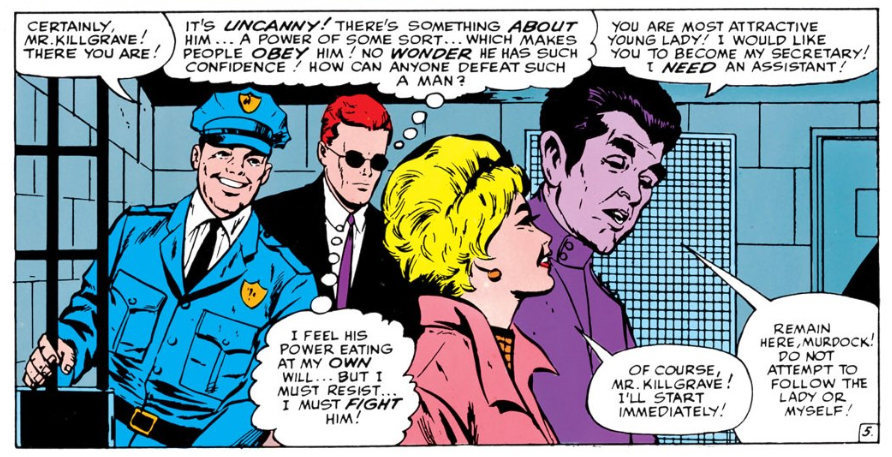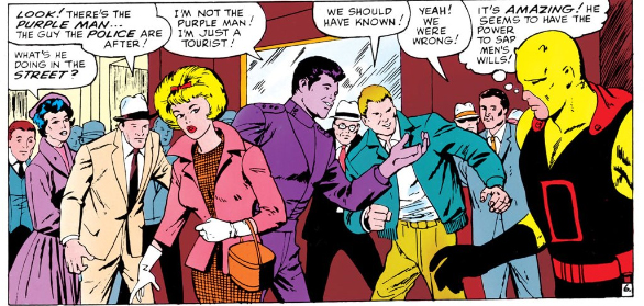 This makes sense. For most of his existence, the Purple Man was a b-list villain to a b-list hero. Created during the Cold War, Zebediah Killgrave was a Croatian scientist-turned-spy who was exposed to dangerous chemicals during a mission and discovered that he had been granted the ability to control minds. (He had also been turned purple, hence the name.) As with most Silver Age Daredevil villians, the Purple Man was hardly a complex three-dimensional character.