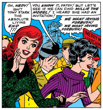 Trish Walker was originally a romance comic, a genre that largely fell by the wayside during the fifties and sixties. (There have been some recent attempts to restart the genre as part of larger efforts to diversify the medium.) Patsy Walker was slowly incorporated into the Marvel universe, in the same way that classic concepts like the Golden Age Human Torch or the Golden Age Angel were gslipped back into continuity along their newer Silver Age counterparts. Stan Lee and Jack Kirby slipped a cameo into the Fantastic Four annual where Reed and Susan Richards married.