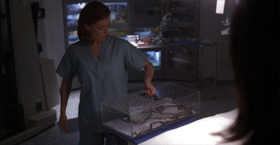 That is perhaps the risk of using something like Dæmonicus as the first “monster of the week” of the short-lived “Doggett and Reyes” era. It makes sense to use a simple story like Squeeze as the first Mulder and Scully “monster of the week” or Patience as the first Doggett and Scully “monster of the week”; with so many undefined elements, it is best to have a fairly straight forward narrative that allows room to develop character dynamics. Dæmonicus instead adds oodles of plot, to the effect of drowning out any character development or exploration.