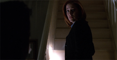 Indeed, it feels like an appropriate time for The X-Files to reengage with the idea of “reality” television. Much like the seventh season, the ninth season is fascinated by the idea of “reality”; in particularly the boundaries that exist between reality and unreality. The ninth season seems to be constantly reminding its audience that The X-Files is a television show, whether through the constant tinkering with the opening credits or the casting of the show’s biggest guest star or the subtle mirroring of the teaser to 4-D.