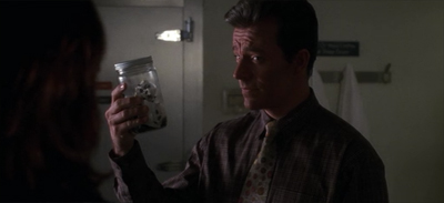 So the idea of “The X-Files does Jackass” sounds interesting on paper, because it represents the collision of old and new television in a very interesting way. To be fair, Jackass was closer to the end of its run than to the beginning, but it was still an example of the future of television. While X-Cops had allowed Mulder and Scully to preemptively intrude on reality television, the prospect of crossing over into Jackass would allow the show to engage with the contemporary television landscape in a way that could be insightful.