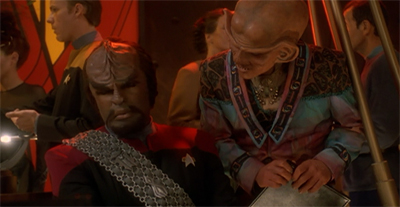 More than that, the writers are very careful about how much or how little focus they give Worf. Worf gets a b-plot in Hippocratic Oath and plot thread in the ensemble piece that is Starship Down. Barring his introduction in The Way of the Warrior, he does not get to headline his own story until The Sword of Kahless. Jake, Bashir, O’Brien, Kira, Jadzia and Quark have already headlined episodes by that point. (In contrast, two of the four episodes following Scorpion, Part II are centred on Seven of Nine.)