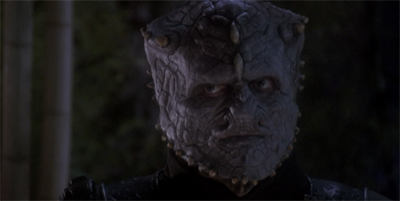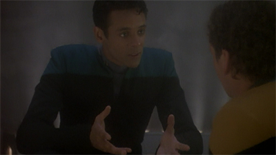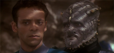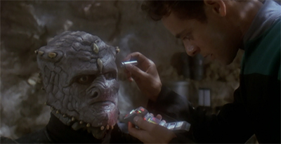 Hippocratic Oath suggests internal tensions at work within the Dominion. The Jem’Hadar might be an army of disposable cannon fodder, but they are very much aware of that fact. Indeed, Hippocratic Oath is the first episode to suggest a strained relationship between the Jem’Hadar and the Vorta. “They are the ones we came here to escape,” Goran’Agar tells Bashir. When a fellow soldier asks Goran’Agar to kill him in accordance with military tradition, Goran’Agar insists, “We came here to be free of the Vorta. It is time to stop living by their rules.”
