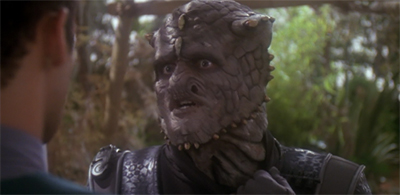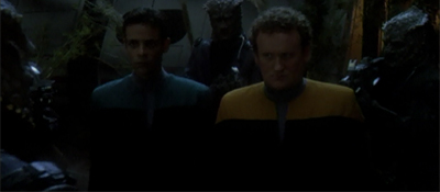 Don’t forget that Goran’Agar is Tosk from the S1 episode Captive Pursuit. He and O’Brien don’t get along nearly as well this time. Guerilla warfare in an alien jungle sounds a bit Predator. Worf would never replace Odo because they tried that with Primmin and Eddington and neither worked out. “Deep Space Nine will not be turning into The Next Generation”; it almost did in S1. There were times when the S3 writers didn’t seem to know what to do with the Dominion.
