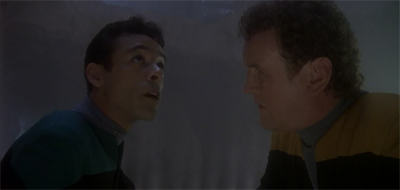 Hippocratic Oath is perhaps the safest of the three Bashir stories from the fourth season, which makes sense given that it is also the first of the three. In particular, it is very much a two-hander, in keeping with the most successful Bashir stories to this point. Hippocratic Oath is almost as much an O’Brien story as it is a Bashir story. The Storyteller had proved that putting Alexander Siddig and Colm Meaney together could elevate even the blandest material, so Hippocratic Oath throws them into a classic Star Trek morality tale.