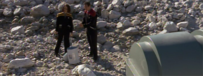 Even at the end of the episodes, the planet’s ecology is presented as the primary concern. “I’m sorry we cannot permit you to extract all the materials you need,” the leader of the Sky Spirits reflects to Chakotay. Chakotay is mindful of the need to respect the local environment. “You were generous to offer as much as you did.” As with Emanations, Chakotay is presented as the member of the crew who is most firmly aware of the rhythm of life as it exists in the Delta Quadrant.