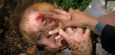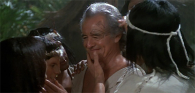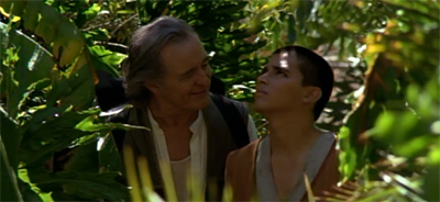 The Rubber Tree People keep to themselves. “They never left this jungle, and they rarely intermarry with other tribes,” Kolopak explains. When Chakotay eventually encounters members of the Rubber Tree People, they have bumpy foreheads and nose ridges to match those of the Sky Spirits who appear at the end of the episode; the obvious implication is that they have been interbreeding with the Sky Spirits. There is an uncomfortable subtext to all of this, suggesting that the purest Native American tribe is the one with the closest connection to those white aliens.