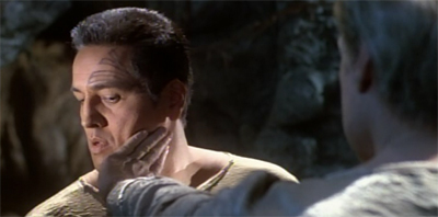 The plot of Tattoo hinges on the idea that Chakotay has somehow stumbled across a planet inhabited by the ancient aliens who once visited Earth and imparted wisdom to his ancestors. On a purely practical level, that seems rather contrived. The alien at the climax tells Chakotay that it took his people “two generations” to reach Earth, although they seemed to make the commute quite frequently. (He speaks of “subsequent visits.”) Did those journeys always begin on this moon? Or did the aliens set up base close to home?