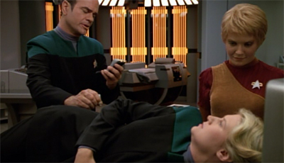 The potential threat facing Voyager in Tattoo is particular to that episode. It is not foreshadowed in the episodes leading up to Tattoo and it is not a problem in the episodes directly following Tattoo. It is hard to get a sense of desperation or need in the context of Voyager. The audience knows that if the crew can simply make it through this forty-five minutes, everything will be perfectly fine by the time that the next episode airs. The idea of a fuel shortage is not a contrivance of itself, but its execution in this particular episode is.
