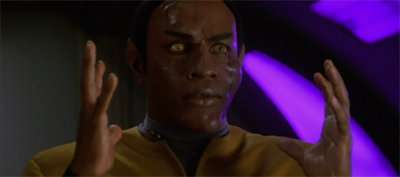 Kes’ ability to “sense” the destruction of the planet in Time and Again evokes Spock’s ability to “hear” the sound of death echoing across the cosmos in The Immunity Syndrome; notably, Tuvok is unaffected. In Persistence of Vision, Kes is able to “reflect” the Bothan visions back upon themselves; in that case, Tuvok is quite quickly captivated by a vision of his wife. If Chakotay is the member of the ensemble most mindful of the spiritual implications of life in the Delta Quadrant, it frequently seems like Kes is tuned to a higher wave-length than her fellow travellers.