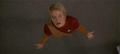 Why does it take 47hrs for Suspiria to respond and not 48 – oh wait, because it’s Star Trek’s lucky number. I thought the ending was a bit rushed, like in Non Sequitur. What did Suspiria do to the rest of the Engineering staff? It’s eerily deserted when Janeway comes down there and how did Tuvok and B’Elanna survive that fall? When Kes has her mental confrontation with Tanis, Jennifer Lien does her best Charlie X impression. There’s quite a few bloody noses and eyes in Cold Fire. In a Christmas episode of Frasier, he admitted he had been waiting to say “low elf-esteem” for a few days.