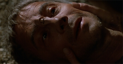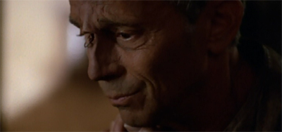 The episode is ambiguous as to just how aware Caylem is of his situation – just how thoroughly he buys into the narrative he has concocted. Is he simply trying to convince himself that his wife and daughter or alive, or has he repeated his mantra so often that it has become the truth as he knows it? Did he already know everything that Augris boasts at the climax on some level, or did he invest completely in his delusion? Both the script and the performance leave it to the audience to make that determination, making the script all the more effective.