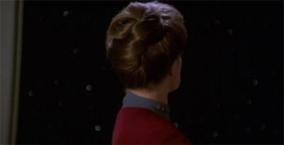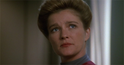 I think Jeri Taylor’s script lays it on a bit thick here. You know Janeway is setting herself up to be disappointed when she says the Trabe can change and especially the ending with Janeway’s speech just in case we missed the point.