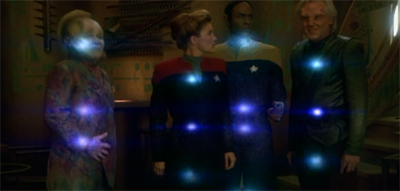 The hovering Kazon Raider made the rest of the delegates a little uncomfortable. And dead. But mostly uncomfortable.
