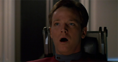 • Yep. In a season that includes Tattoo and Alliances, it seems strange to single Threshold out. And there are logical problems with this, but they’re really just an extrapolation of the logical problems that come baked into the franchise. (Which is appropriate; if transwarp is warp to the power of infinity, it makes sense that its logical inconsistencies and insanity should be equivalently scaled up from the already ropey science of warp speed and transporters.) But you’re right that MacNeill gives it his all.