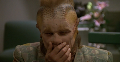 More than that, though, the Kazon simply are not interesting. The design of the Kazon makes them feel like knock-off Klingons, with their browned skin and their distinctive forehead ridges. They are yet another generic “warrior culture” in a franchise that is populated with better (and more defined) examples. The emphasis on the primitive nature of the Kazon makes them seem more pitiable than predatory; the failed transporter experiment in State of Flux suggests that Janeway probably should be helping a people this desperate.