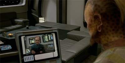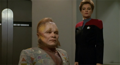 Given that the show has given us several consecutive episodes of Jonas talking to the Kazon and Paris acting like a jerk, it seems weird that Voyager could not set up Neelix’s journalistic endeavours a few episodes in advance so it doesn’t feel like a transparent set-up to move this particular plot along. Neelix suddenly decides to become a journalist because the plot for Investigations requires a journalist, and then forgets about his journalistic career by the time the teaser for Deadlock rolls around.