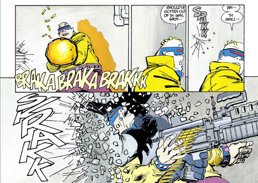 Of course, the influences extend beyond even Frank Miller’s Daredevil run. There are visual influences from other Daredevil comics; Matt’s daring mid-air rescue of Claire Temple at the start of .380 was practically storyboarded by Ed Brubaker and Michael Lark in Daredevil #98. There are Frank Miller influences beyond Daredevil; when Elektra is pulled through a wall in A Cold Day in Hell’s Kitchen, it evokes a similar sequence in The Dark Knight Returns #2. The Dark at the End of the Tunnel even has Frank Castle recreate the cover to Punisher MAX #1.