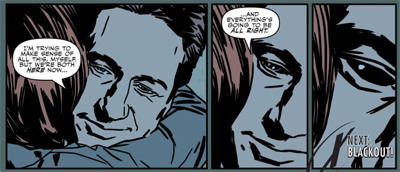 (As an aside, Pilgrims seems very aware of its existence as a comic book. The chopper that abducts Krycek is given the code name “blackbird”, in what seems to be a nod to the stealth jet that appears in Uncanny X-Men. At one point, the Cigarette-Smoking Man remarks to Gibson Praise, “I’d imagine it must be lonely for a man such as yourself. All the world on puppet strings, but only he can see them.” It is an allusion to one of the most famous quotes from Watchmen, perhaps the most famous comic book ever published.)