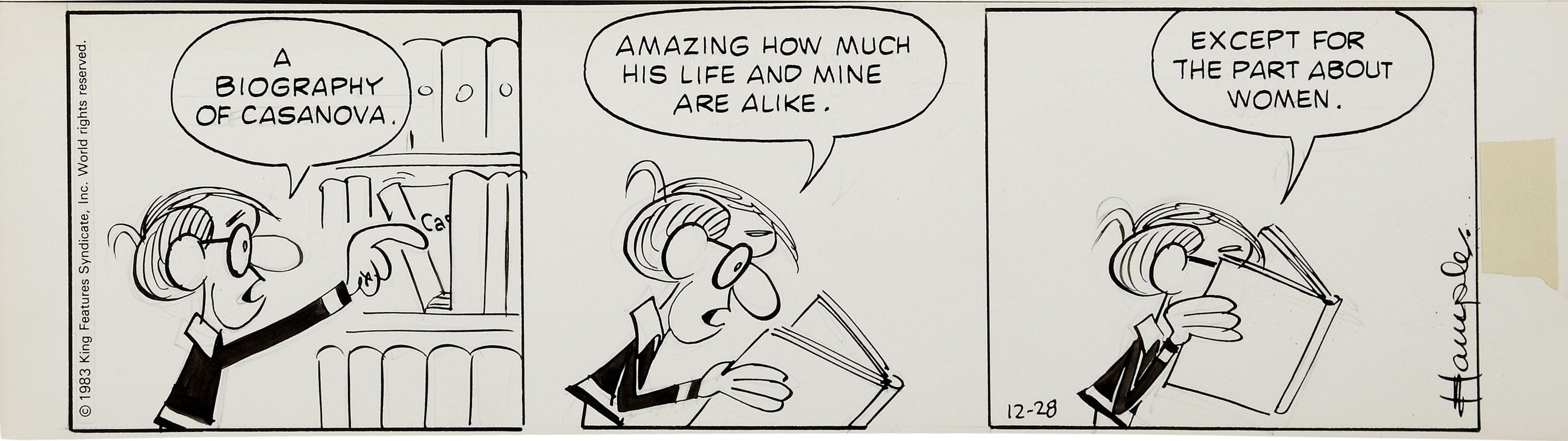 - Example of “Inside Woody Allen”, Stuart Hample’s comic strip that ran from 1976 to 1984.