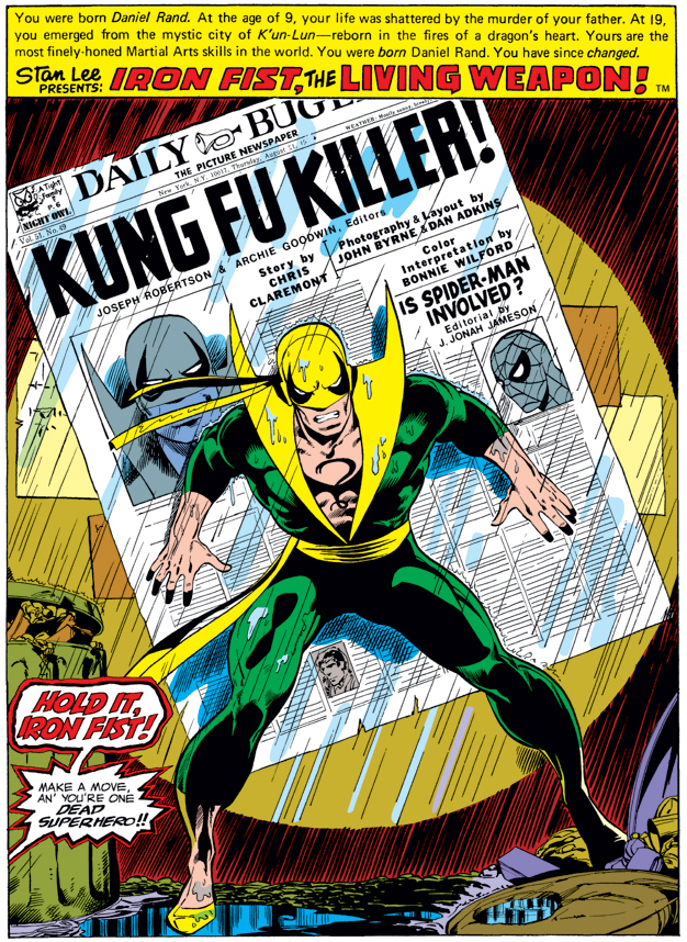 However, Iron Fist chooses to draw primarily from the original seventies version of the comics. This run began with the ten-issue run in Marvel Premiere that opened with writer Roy Thomas and artist Gil Kane, before cycling through a number of other creative teams and settling upon writer Chris Claremont and artist John Byrne. Claremont and Byrne then launched a fifteen-issue Iron Fist series that ran bimonthly and then monthly before being cancelled. They wrapped up their run in a two-part story in Marvel Team-Up.