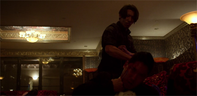 The hallway fight in Eight Diagram Dragon Palm feels very straightforward, to the point that Danny opens the door to the hall outside his penthouse and finds that the bad guys are already lined up and ready to fight. There are certainly innovative elements to the fight. Trevor Morris’ score very consciously channels eighties exploitation films, and the brawl takes a twist when Danny pushes his way into an elevator and the fight continues via split screen. However, the fight is never visceral and never tangible. It feels perfunctory rather than revelatory.